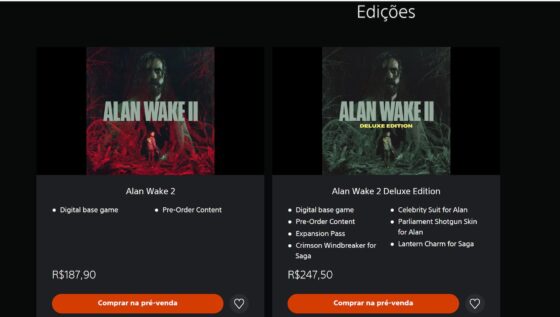 [Atualização]: No PC, o valor de Alan Wake 2 subiu para R$ 225 na versão normal e R$ 315 na versão Deluxe, mas o valor nos consoles ainda não teve um reajuste.