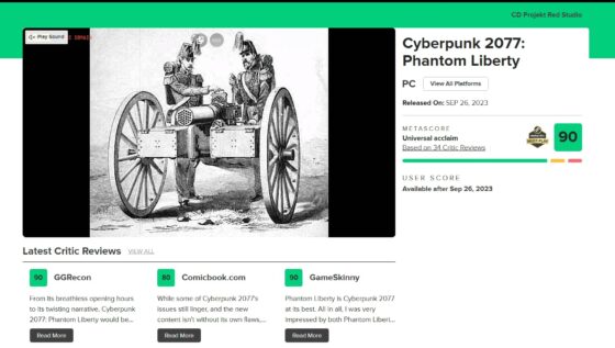 Neste momento, a expansão de Cyberpunk 2077 está com uma média de 90 pontos no Metacritic e também 90 no Opencritic. Se destrincharmos um pouco mais, Phantom Liberty tem 90 na versão de PC, 89 no Xbox Series X|S e 88 no PS5.