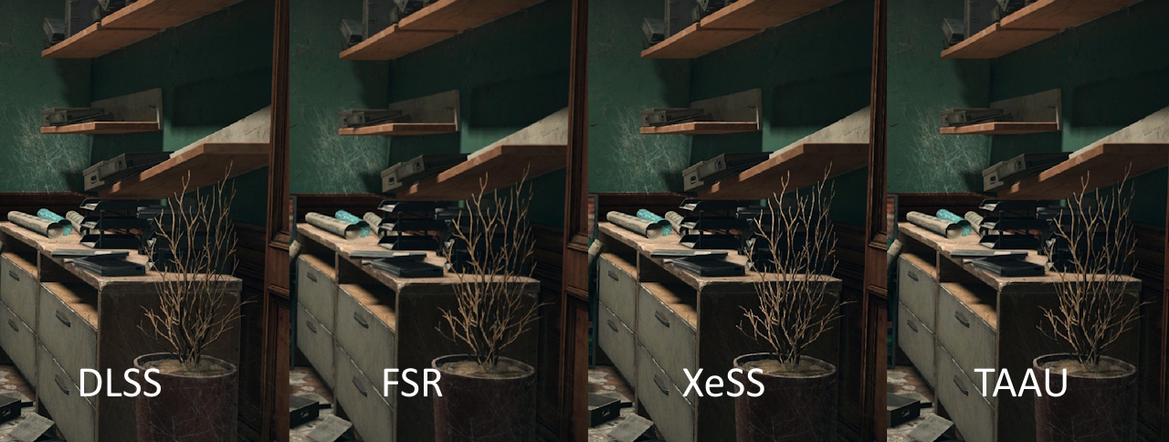No PC, para obter a melhor qualidade gráfica possível, fica a recomendação de utilizar o DLSS. Apenas para parâmetros de comparação, confira logo abaixo (clique na imagem para ampliar) um comparativo entre o DLSS 3, FSR 3 e XeSS, que mostra principalmente como os objetos e alguns outros elementos ficam mais borrados ou serrilhados.