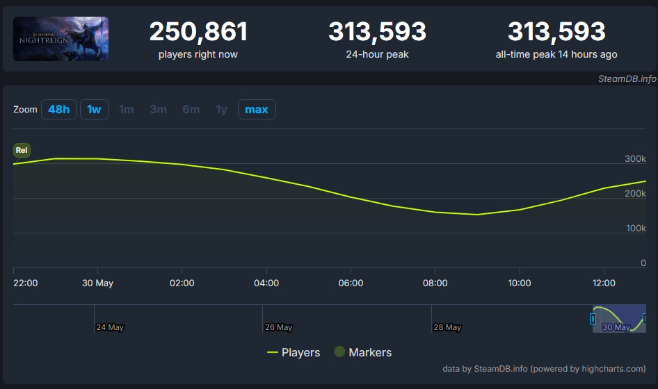 Em menos de 24 horas após o seu lançamento, segundo dados do SteamDB, o Elden Ring Nightreign já chegou a registrar mais de 250 mil jogadores online simultaneamente.