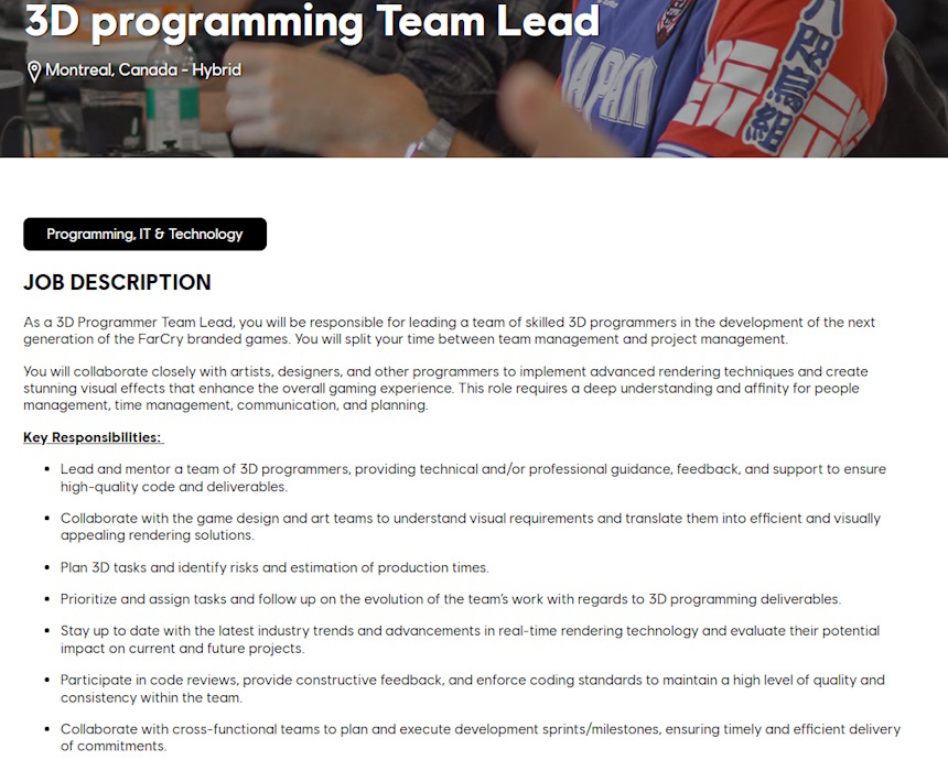 Infelizmente, como era de se esperar, nenhuma menção é feita a um possível Far Cry 7, codinome ou outro nome que o jogo possa ter. A vaga ainda exige conhecimento de algumas linguagens de programação, mas não revela qual a engine está sendo utilizada para desenvolver os jogos.