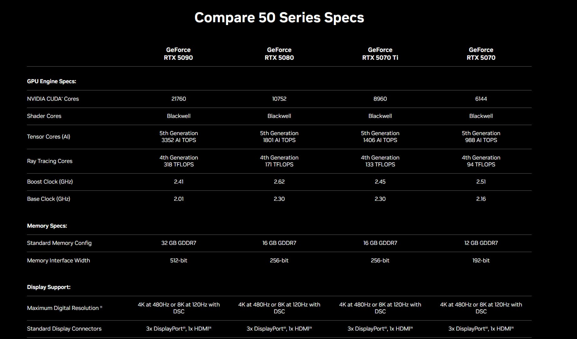 Segundo a NVIDIA, essa é a placa de vídeo mais rápida até o momento — possui 92 bilhões de transistores, fornecendo mais de 3.352 trilhões de operações de IA por segundo (TOPS) de poder de computação. As inovações da arquitetura Blackwell somado com a nova tecnologia DLSS 4 se unem para trazer uma GPU que ultrapassa o desempenho da GeForce RTX 4090 em até 2x.