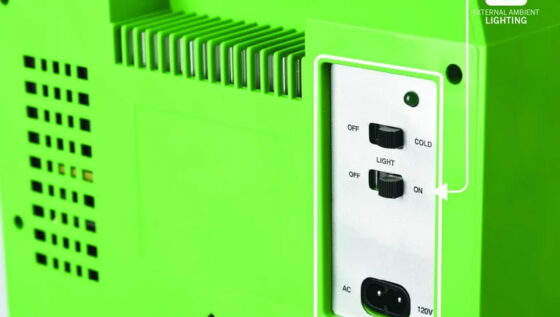 Já o frigobar é mais protocolar, mas com alguns detalhes bem legais, como LEDs verdes (externos e internos), capacidade de até 12 latas (espaço interno de 8 litros), prateleiras removíveis e, claro, o formato do monstro mais famoso de Minecraft.