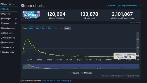 Nos últimos meses, vimos um comportamento muito similar de uma queda grande de jogadores em Palworld, jogo de sobrevivência com inspirações em Pokémon que bateu recordes na Steam e, posteriormente, viu os números despencarem.