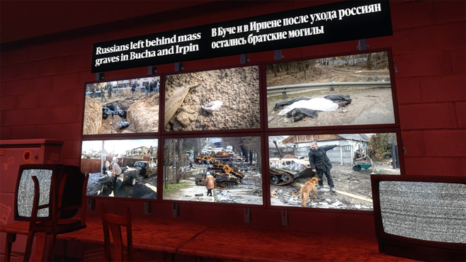 Dentro desse local há uma série de histórias em idioma russo sobre as ações militares da nação de Putin em sua invasão à Ucrânia. A iniciativa surgiu para destacar o Dia Mundial da Liberdade de Imprensa, celebrado em 3 de maio desde 1993.