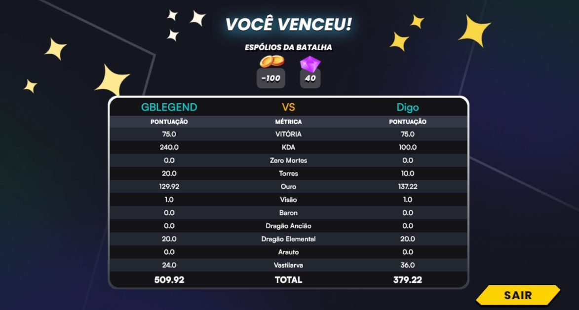 No fim, o ranking da competição é definido pela somatória das duas melhores partidas de cada participante no League of Legends durante a liga, fazendo com que aqueles que apresentaram a melhor performance recebam as recompensas.