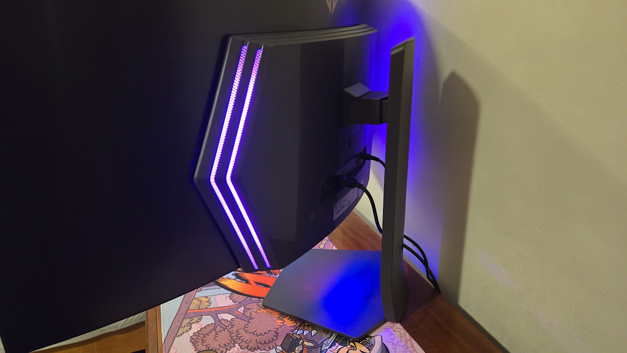 Em comparação ao modelo anterior da mesma linha, o LG UltraGear OLED Curvo 45GS95QE me surpreendeu de forma bem positiva no seu acabamento ao corrigir diversos pontos. O seu tamanho avantajado de 45 polegadas é o que mais chama a atenção com a sua curvatura acentuada de 800R.