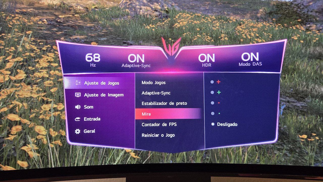 Para a parte do menu, a LG não implementou tantas novidades no LG UltraGear OLED Curvo 45GS95QE. O menu é basicamente o mesmo visto no modelo do ano anterior, mas ele parece estar um pouco mais fluído.