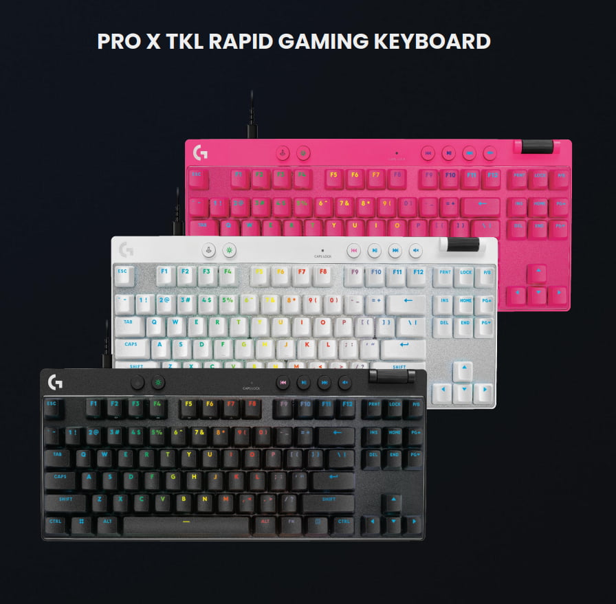 Na seção de teclados, há duas grandes novidades: novas gerações do Logitech Pro X TKL Rapid Trigger, o teclado de acionamento ultrarrápido, e do G915 (e suas variantes X Lightspeed, X Lightspeed TKL e X).