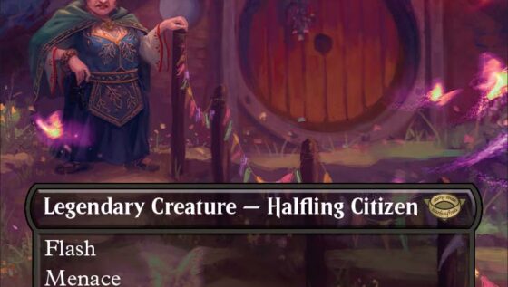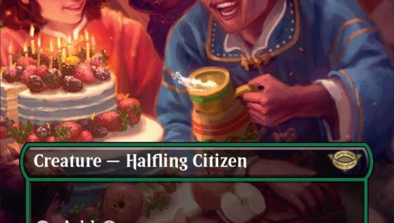 Entre as versões alternativas, é muito bacana que a equipe de Magic: The Gathering criou uma cena única composta por 6 cartas. Quando juntas, elas formam a festa de aniversário de 111 anos do Bilbo. A parte boa é que os cards estarão disponíveis no kit de pré-lançamento e nos Boosters de Colecionador.