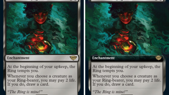 Na primeira vez que o Anel tentar o jogador durante o jogo, ele vai receber um emblema chamado “O Anel”, e um card impresso poderá ser mantido na zona de comando como lembrete de que aquele jogador possui esse diferencial – e o que ele faz.