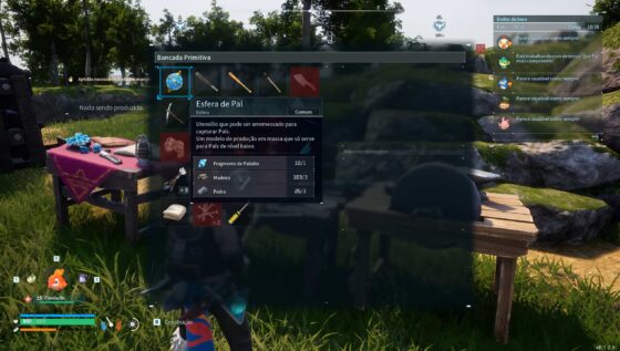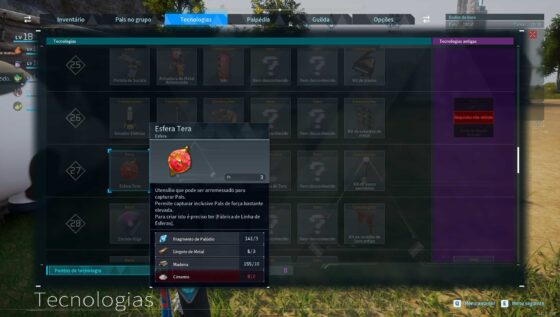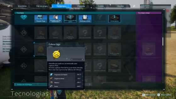 No início da sua aventura, você terá apenas as Esferas de Pal convencionais, mas no nível 14 você pode desbloquear a tecnologia de Oficina de Esferas, que desbloqueia a criação de Esfera Mega (neste ponto, você já deve ter diversas tecnologias desbloqueadas, como criação de Lingotes de Metal, Forno Primitivo e mais).