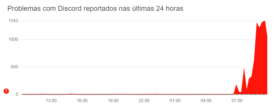 Até o momento, o Downdetector já registra cerca de mil notificações. Já ciente do transtorno que os usuários estão enfrentando, a página oficial de status do Discord diz que o aplicativo está com picos de tráfego incomuns, mas que já estão trabalhando para corrigir o quanto antes.