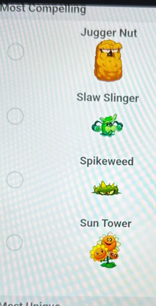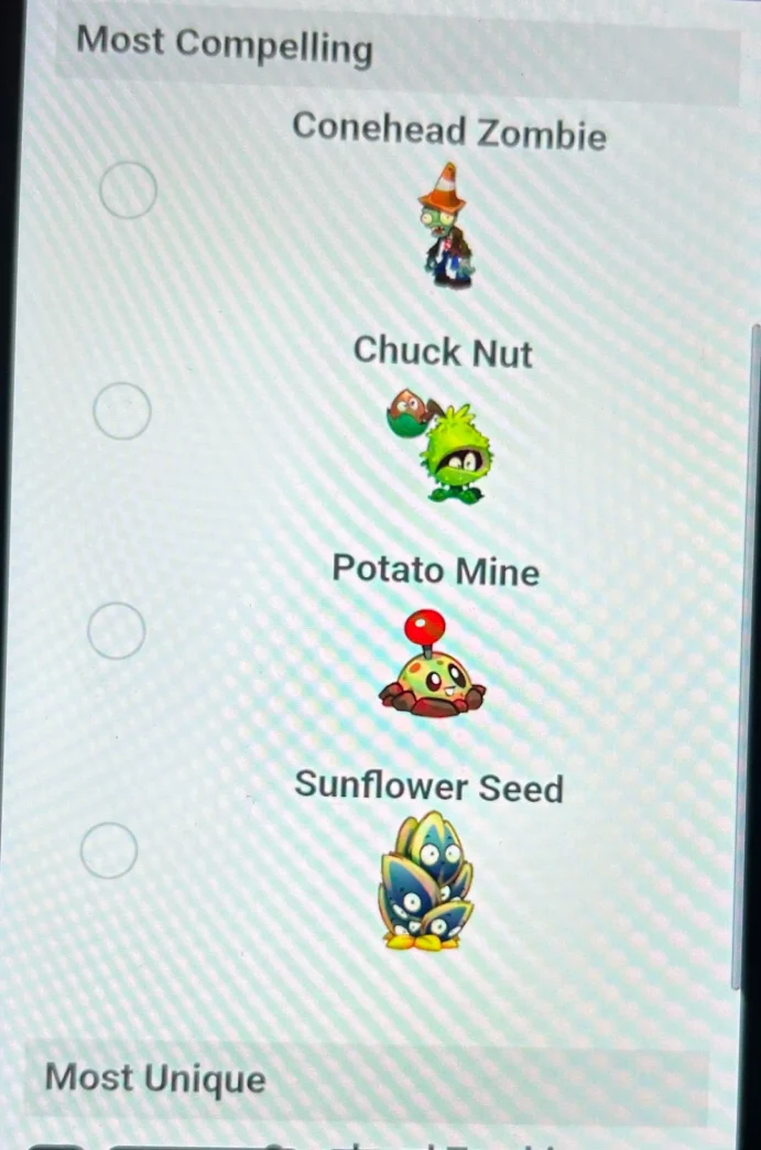 Nas fotos, vemos uma parte da trama contada em forma de história em quadrinhos e uma sequência de plantas com um design levemente diferente do original (no que parece ser um formulário ou pesquisa, possivelmente de algum playtest).