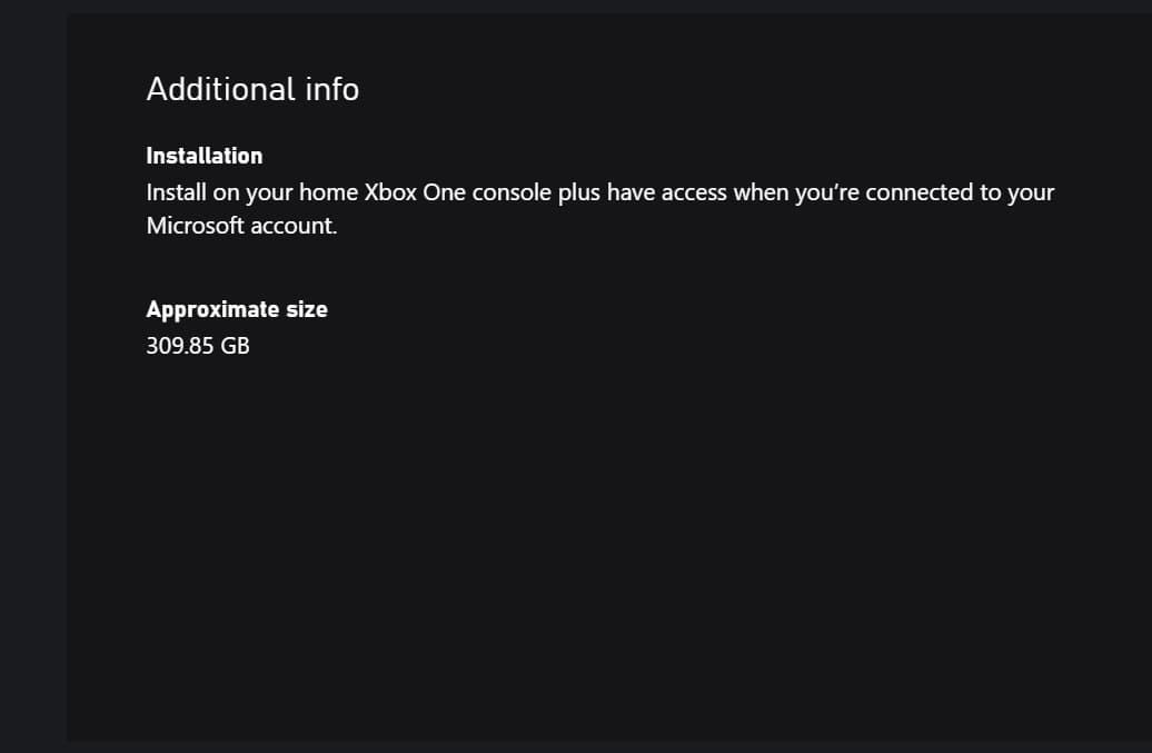 Apesar de não necessariamente implicar o espaço que vai ocupar em todas as versões, como Xbox One, Xbox Series X|S, PS4 e PS5, ainda é um requerimento bem pesado, mesmo que seja menor no app de consoles.