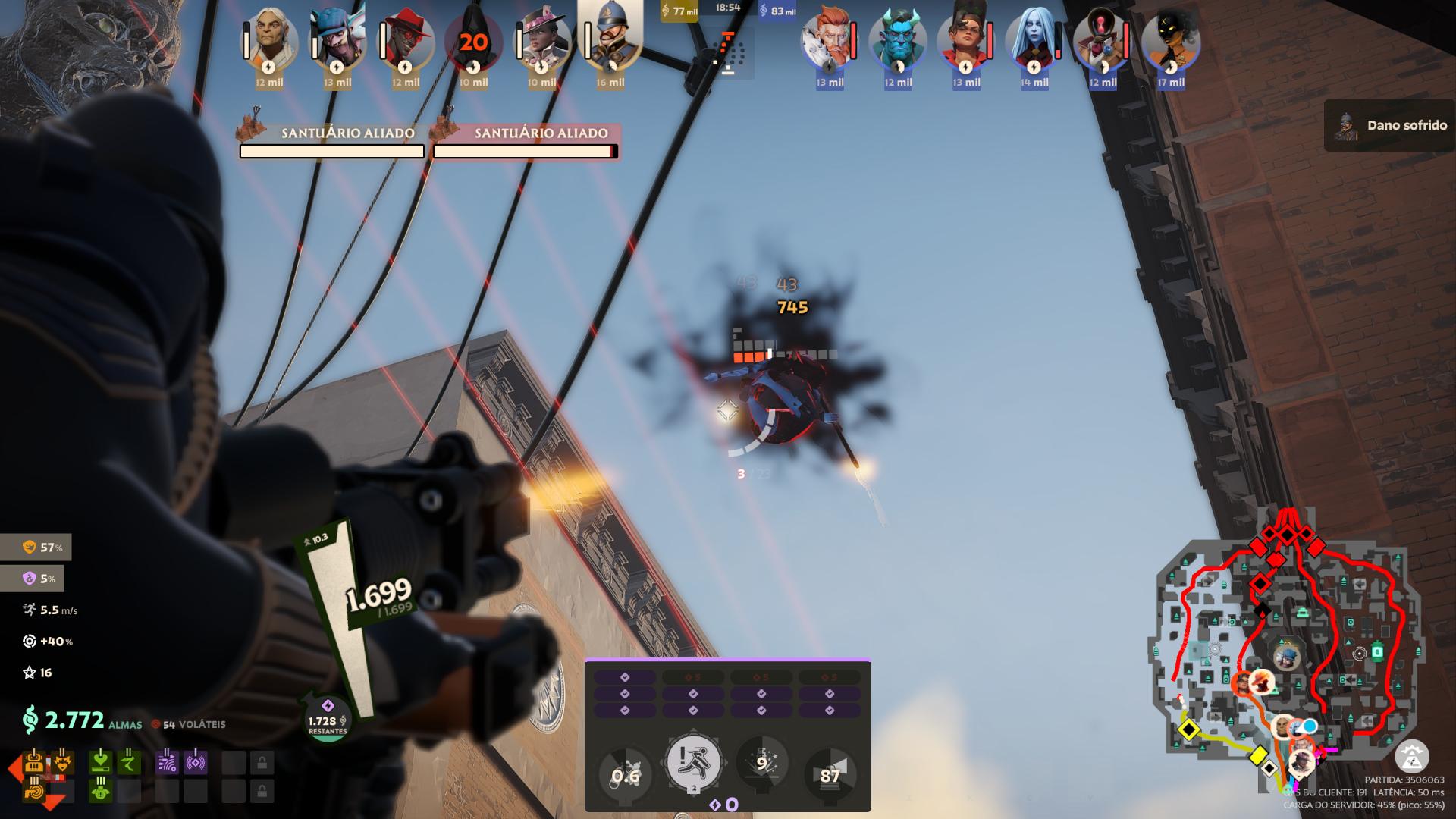 A dinâmica de tempos e mapa de Deadlock também trazem suas peculiaridades, já que não há a “volta à base” tradicional nem o courier (para jogadores de Dota 2). Aqui, há sistemas de tirolesas que ajudam na locomoção, mas há uma sacada aqui também: elas só o levam até onde a rota estiver, ou seja, onde seus minions estiverem. Se estiver avançada, vai mais longe, se não, para perto da própria base.