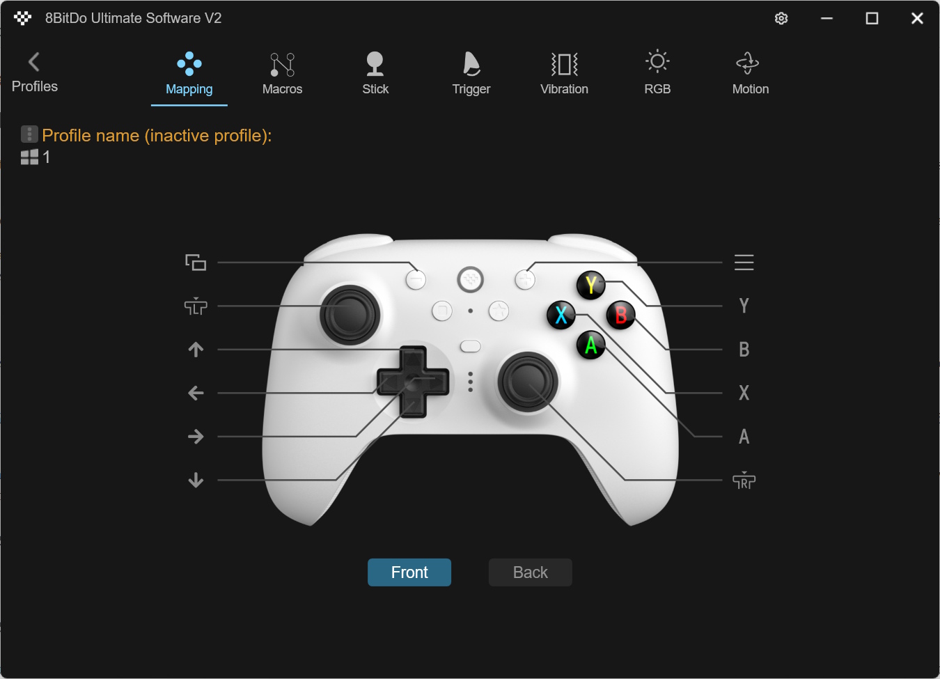 Para atualizar o firmware ou mexer nas configurações do 8BitDo Ultimate 2 Wireless é necessário baixar o 8BitDo Ultimate Software V2. Apesar do aplicativo até trazer boas funções, infelizmente, ele não é dos mais práticos.