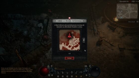 Quer ir além disso? Então, prepare-se para ralar um pouco. É necessário liberar a dificuldade Pesadelo para habilitar a queda de equipamentos sagrados e únicos, e o drop de Sigilos do Pesadelo, que permitem acessar versões ainda mais difíceis das masmorras. Isso também ativa as Marés Infernais pelo mundo, eventos regionais que deixam os monstros mais poderosos, mas concedem recompensas igualmente fortes – usando um certo número de Cinzas Aberrantes para abrir baús chamados Dádivas Torturadas.