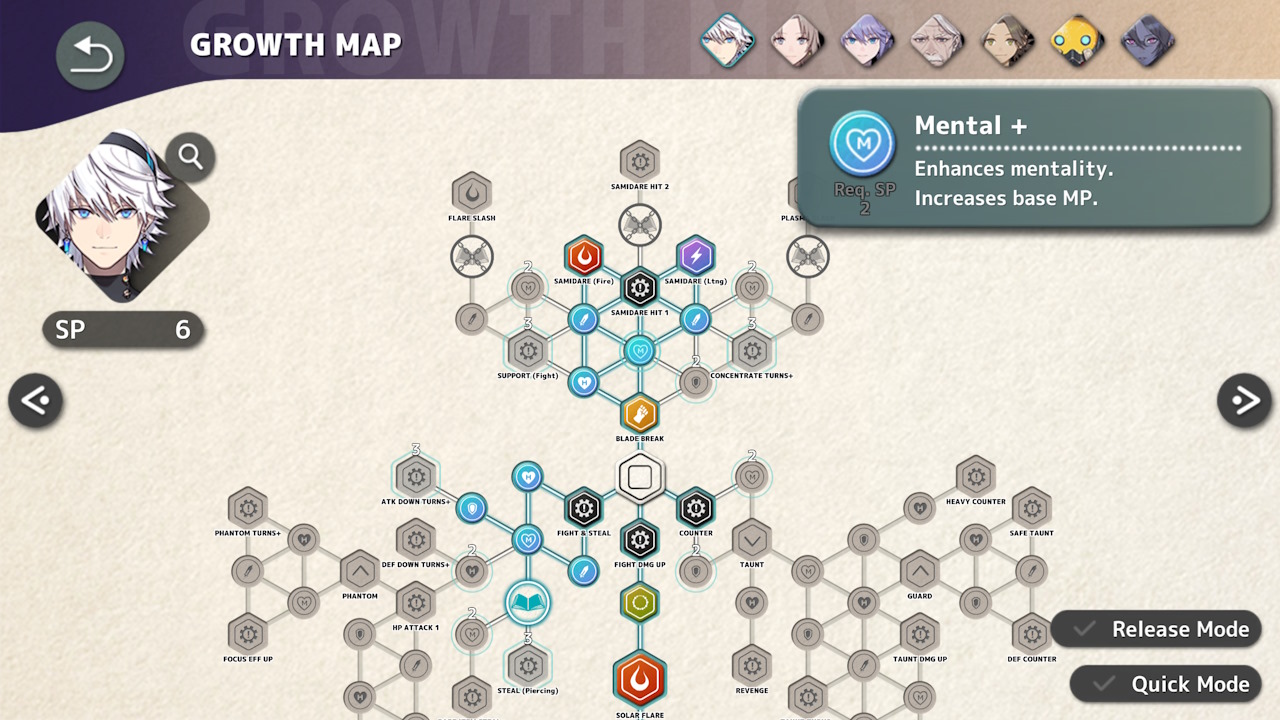 O jogo, lá para suas 20 horas de campanha, até chega a apresentar o “Growth Map”, um sistema bem similar ao Sphere Grid, do Final Fantasy X. Ali nós encontramos acesso a alguns buffs interessantes e até mais magias, mas não nego que gostaria de uma forma melhor de poder utilizar mais magias com outros personagens.