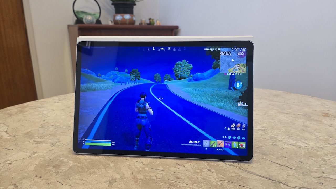Enquanto a performance do Galaxy Tab S10 FE+ até surpreende para essas atividades mencionadas, infelizmente, ele desaponta quando o assunto é rodar jogos. Nos meus testes, em nenhum momento consegui fazer uso dos 90 Hz da forma que gostaria, uma vez que a performance não era o suficiente.