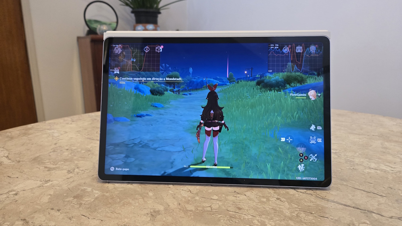 No Genshin Impact, mesmo com tudo no médio, o Galaxy Tab S10 FE+ não conseguiu atingir os 60 FPS e a sua média ficou na casa dos 51 FPS, com queda para os 40 FPS em muitos momentos.