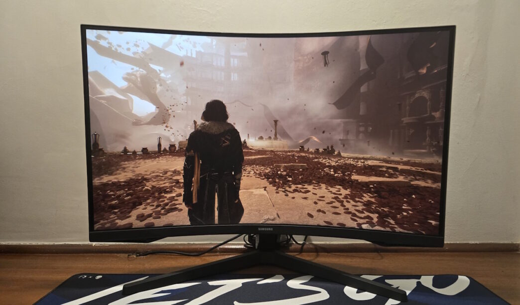 Algo que chama a atenção para o lado positivo é sua curvatura 1000R. Ela pode ser considerada um pouco mais acentuada do que a vista em outros modelos, mas que eu pessoalmente gosto por conta da imersão. Não apenas isso, ela casa bem com um modelo de 32 polegadas, sendo útil para quem não for tomar muita distância da tela poder enxergar tudo.