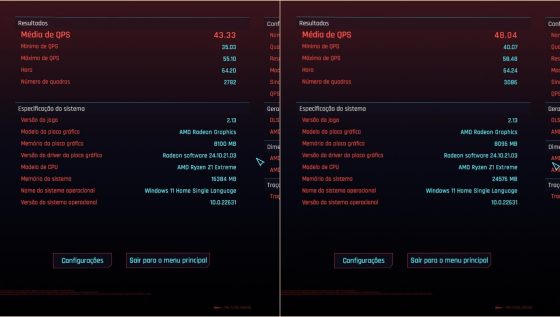 Na prática, a RAM mais veloz vai ajudar na performance de diversos jogos e, em nossos testes, o aumento de performance pode ir de singelos 2 fps até 12 fps (talvez até mais em alguns cenários). Porém, o que realmente ajuda bastante é a quantidade de RAM extra.