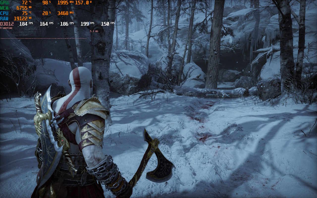 Em God of War Ragnarok com tudo no máximo e na resolução nativa sem o uso de DLSS, o jogo apresentou uma média impressionante de 140 FPS. Utilizando a geração de quadros do DLSS, mas ainda com a resolução nativa, a média foi de 194 FPS.