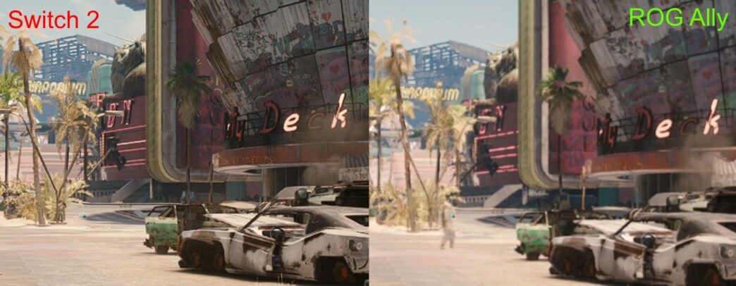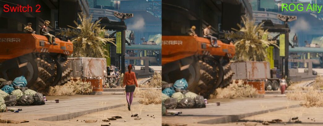 Além disso, títulos como Street Fighter 6, possui uma qualidade de imagem superior e até mesmo alguns elementos, como texturas e efeitos, melhores que os do Xbox Series S – a mesma coisa ocorre com Cyberpunk 2077. Entretanto, as versões de alguns títulos de Switch 2, como Hogwarts Legacy, Fortnite e mais, possui uma qualidade entre um PS4 Pro e um Xbox Series S, então varia caso a caso.