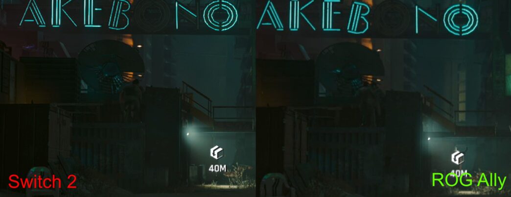 Por mais que Cyberpunk tenha um visual melhor no portátil da Nintendo, o ROG Ally e outros dispositivos possuem suporte ao FSR 3 ou ferramentas como o Lossless Scaling, se sobressaindo em desempenho com os recursos certos (e, no geral, melhor customização, presets gráficos e performance).