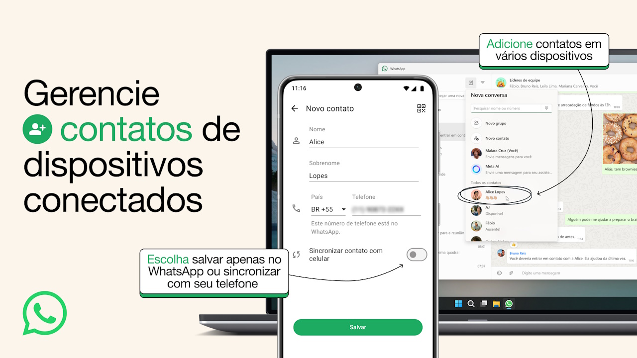 Em breve, diferentemente do que ocorre hoje, o WhatsApp permitirá que contatos sejam adicionados a partir de qualquer dispositivo conectado. A novidade foi divulgada pela própria Meta no blog de seu mensageiro.